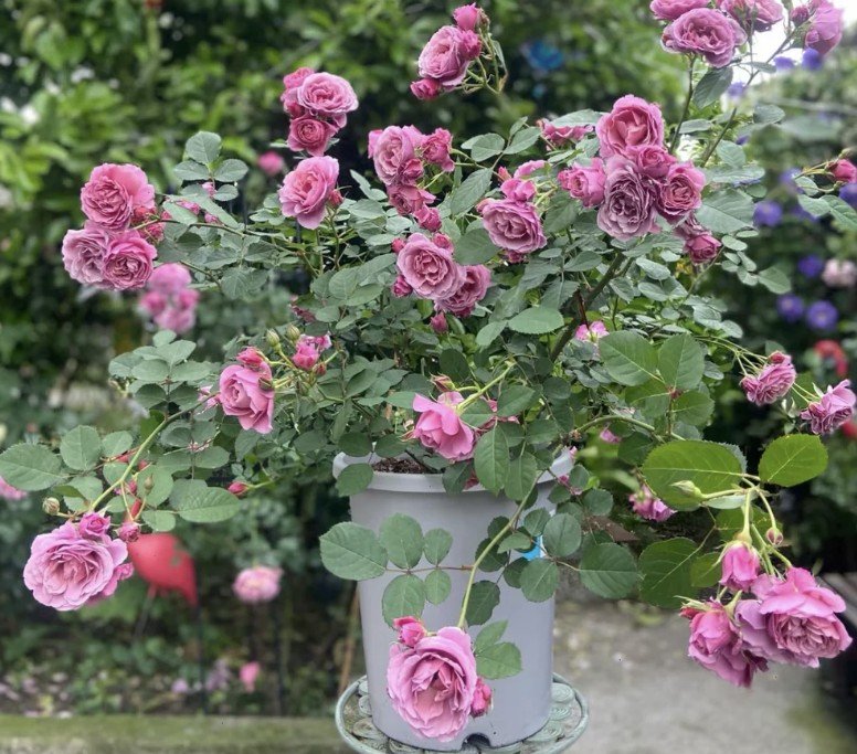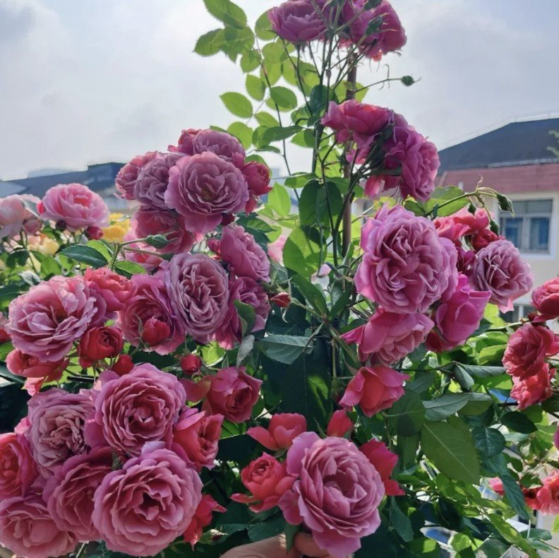 Giống hồng này không chỉ gây ấn tượng bởi vẻ đẹp thanh thoát, mà còn bởi độ sai hoa vượt trội, tạo thành từng chùm hoa lớn như những đám mây tím hồng rực rỡ trong vườn.